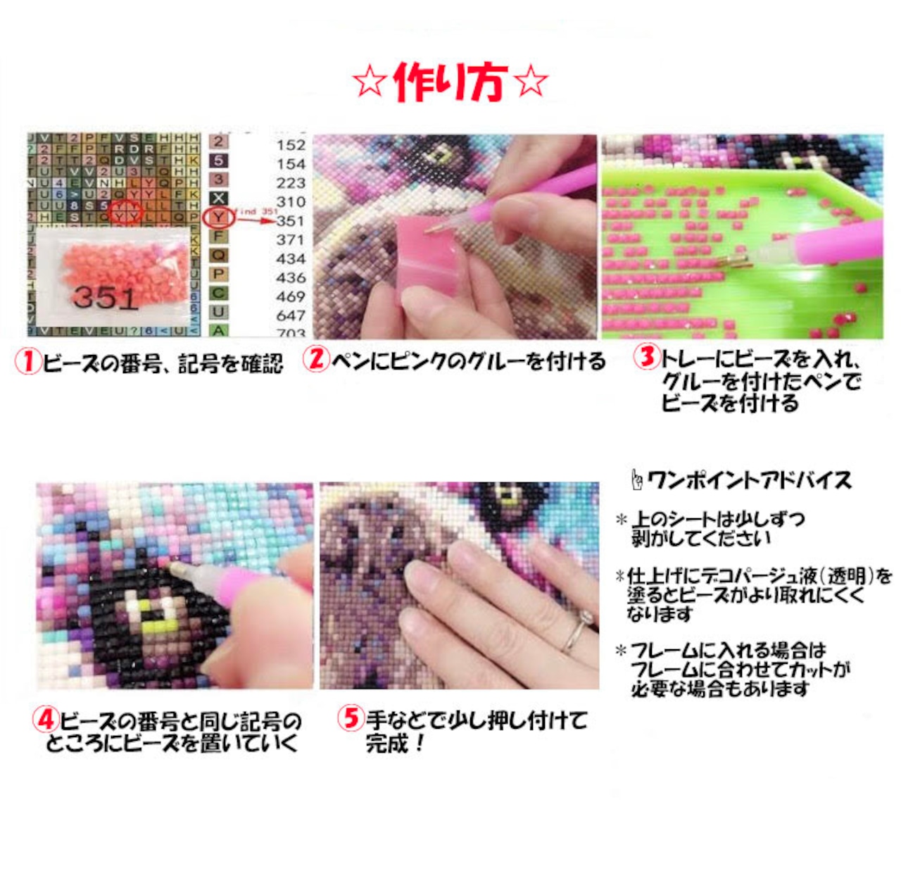 ☆セット・・図案、ビーズ、トレー、ペン、グルー